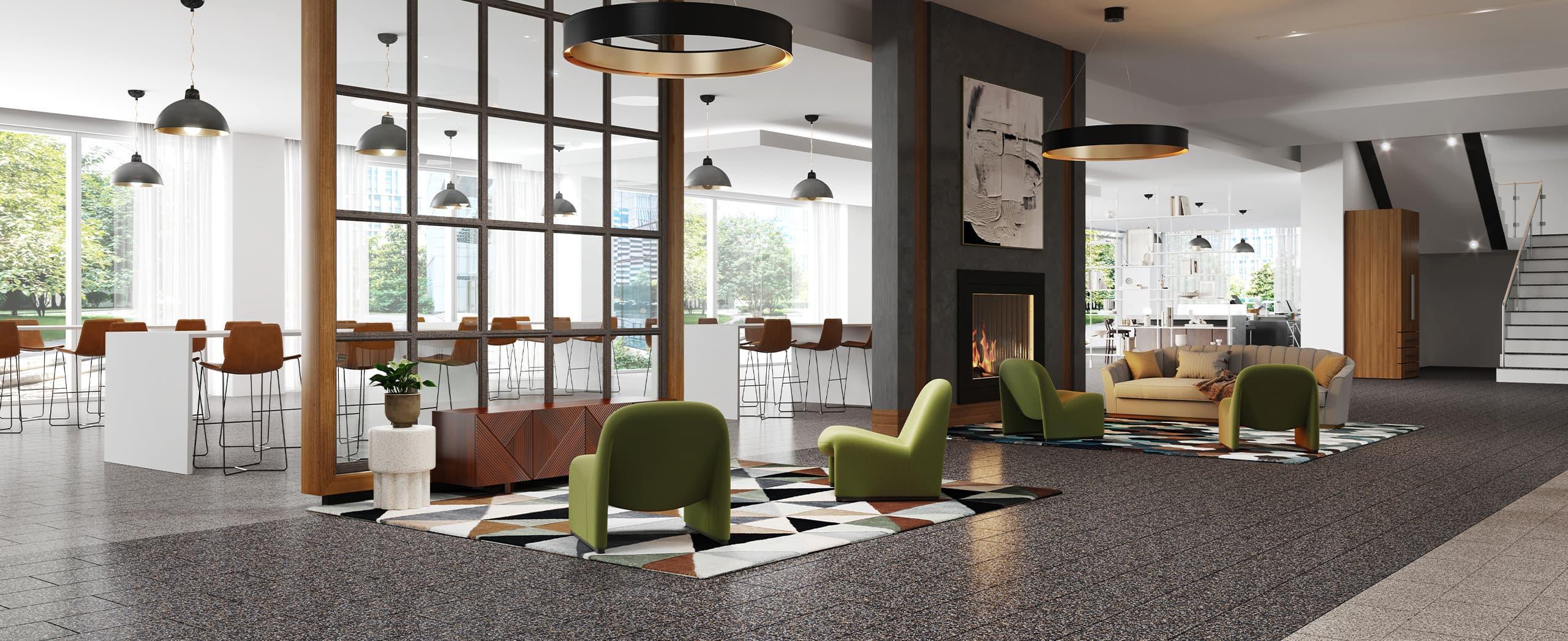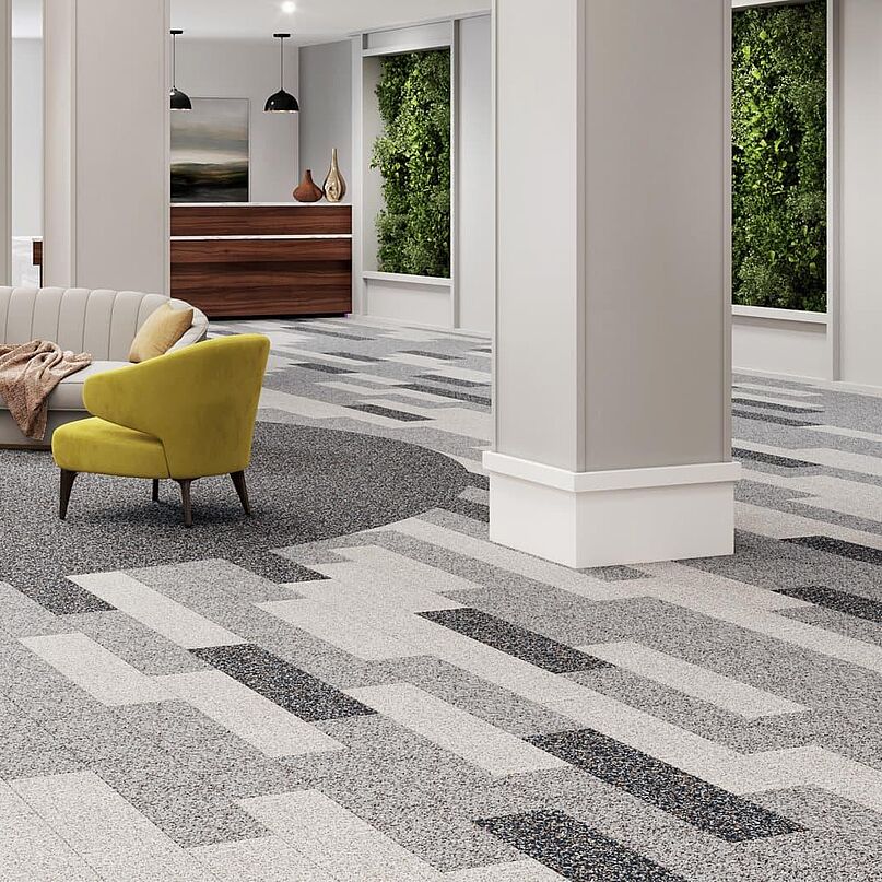 Dunkle Grautöne, durchsetzt mit warmen Braun- und Kupfernuancen, erinnern an glimmende Feuerstellen in der Nacht. Glamping ist luxuriös und naturverbunden zugleich. Ein Boden, der das Rustikale mit einem Hauch Glamour verbindet. Er trägt die Stimmung von Zelten im Abendlicht, von Stoff und Holz, von Wärme und Exklusivität. Ein Dekor für Räume, die das Besondere suchen und Geschichten voller Atmosphäre erzählen wollen.