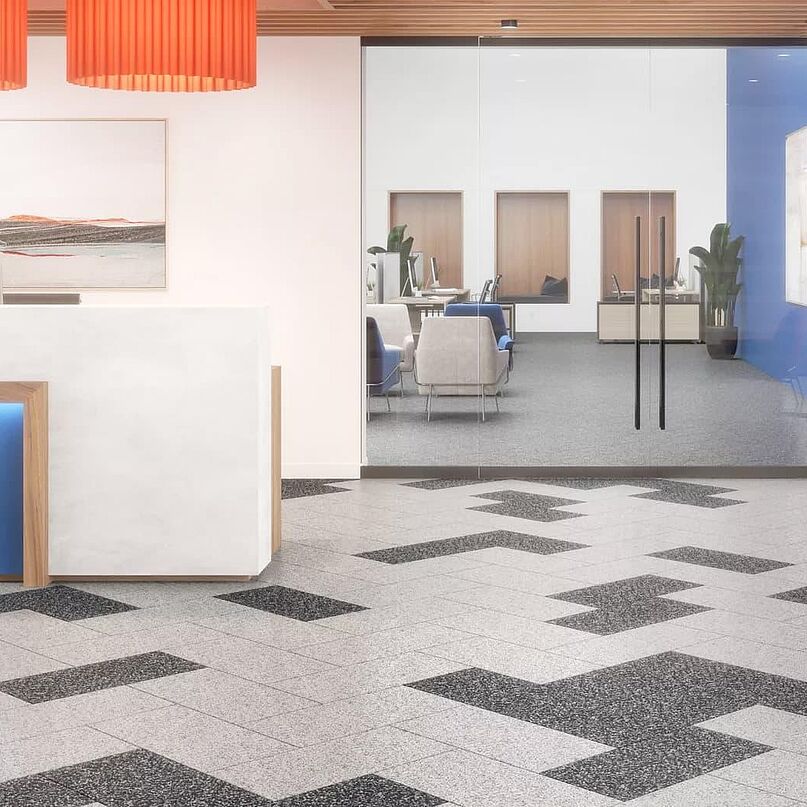 Tiefe Grautöne, durchzogen von hellen Sprenkeln, erinnern an nassen Asphalt, auf dem sich das Licht der Stadt spiegelt. Das Dekor trägt die Kraft des Neubeginns in sich. Kühl, klar und voller Energie. Ein Boden, der Räume so wirken lässt, als würden sie durchatmen.