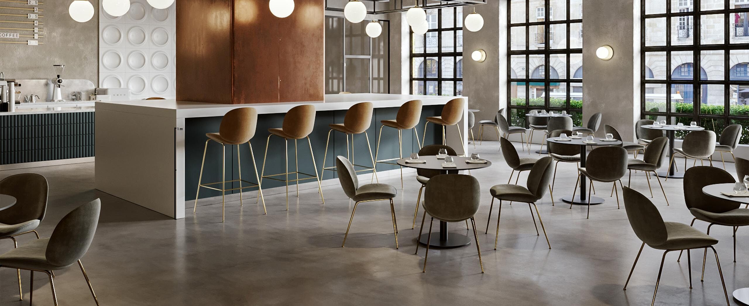Ob warme Farbtöne für eine einladende, behagliche Atmosphäre oder kühle Nuancen für einen klaren, industriellen Charakter – kombinieren Sie Ihre Designs frei und schaffen Sie so moderne Designboden-Lösungen für stark frequentierte Bereiche, die begeistern und bleiben.